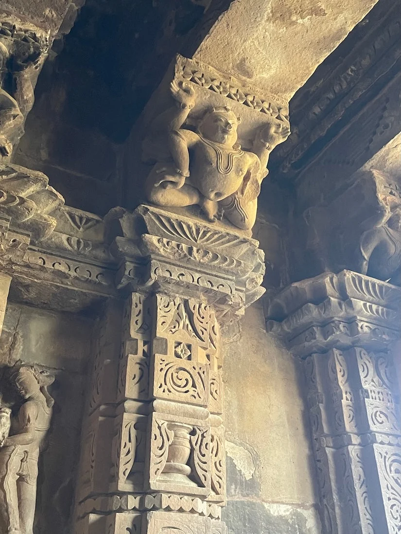 Here there is one of the Sardulas, at the entrance of Mahadeva Temple. A lion/human mythical creature, interacting with a nymph.