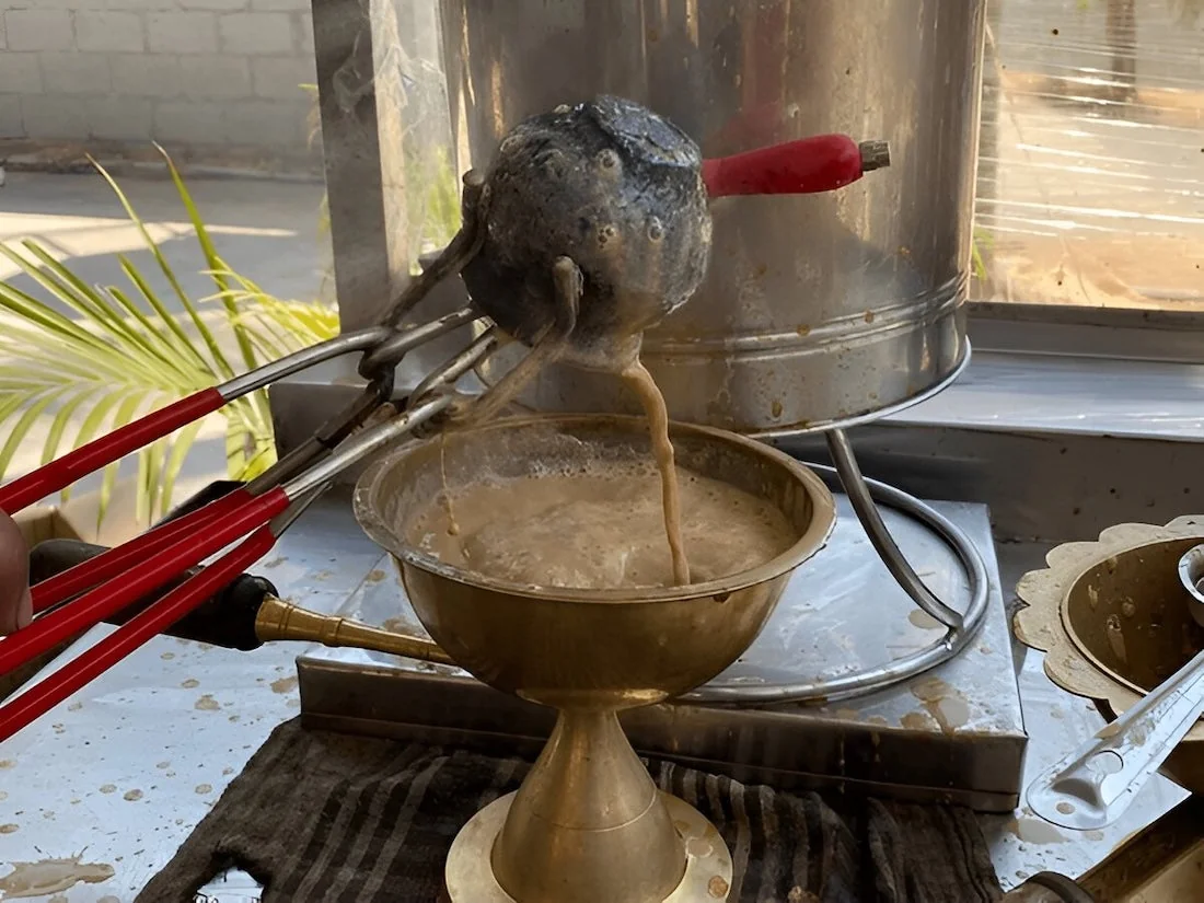 👩🏽⚕️: This is a jihwa prakshalaka, crafted from traditional panchaloha – a sacred blend of five metals. Our ancestors have used these for thousands of years as part of their morning ritual, or dinacharya.