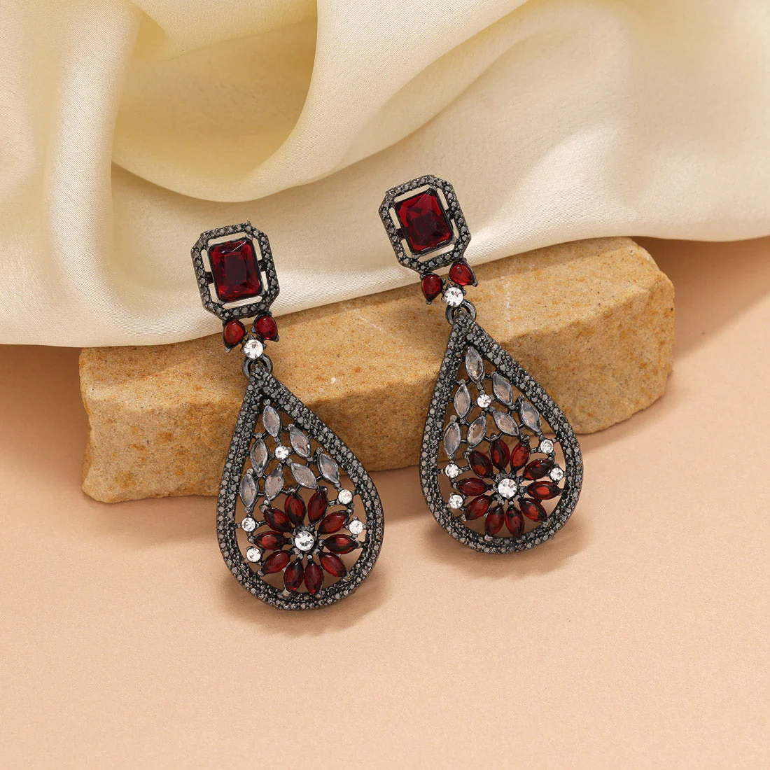Maroon Color Fashion Earrings | Fashion Earrings | Party Fashion Earrings | Stonework For Bridal Functions